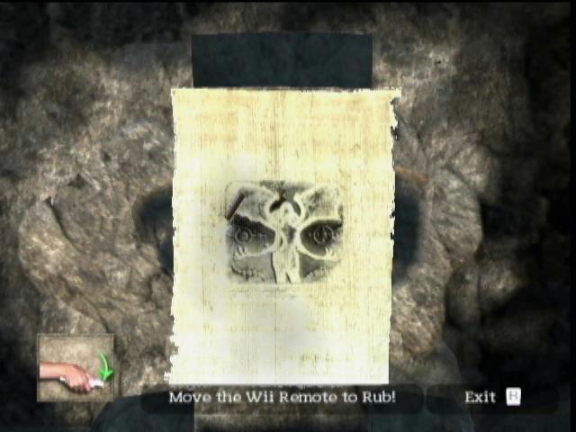 The Nintendo Wii game also includes rubbing rewards. There are a dozen such rewards hidden throughout the game. To collect them, first locate certain carved images that can be copied using virtual paper and charcoal. Once you've created these images, they are then placed on display in a special area in Croft Manor.