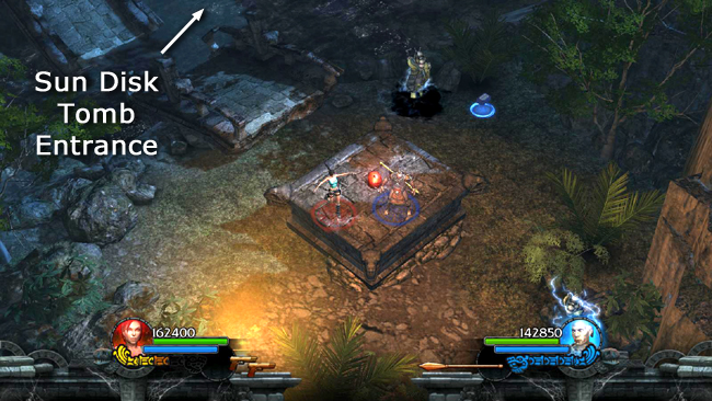 NOTE: A tomb containing one of the SUN DISCS is located at the top of the long staircase, on the NE side of the map, but I recommend saving that one for last. If you go for the discs in the north and west first you'll end up doing less backtracking overall.