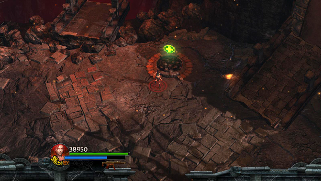 When the gatekeeper falls, the flames on the west side of the arena go out so you can exit. Pick up the GOLDEN KEY the gatekeeper dropped wherever it lost his shield. Then head to the west just until the next checkpoint registers. If you're in a hurry to finish, continue to the west and skip down to the “BROKEN BRIDGE” section, below. Otherwise, take a few minutes to pick up the remaining red skulls and explore the SECOND CHALLENGE TOMB.