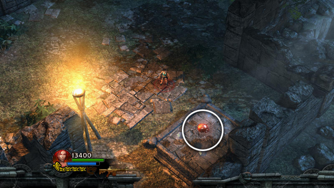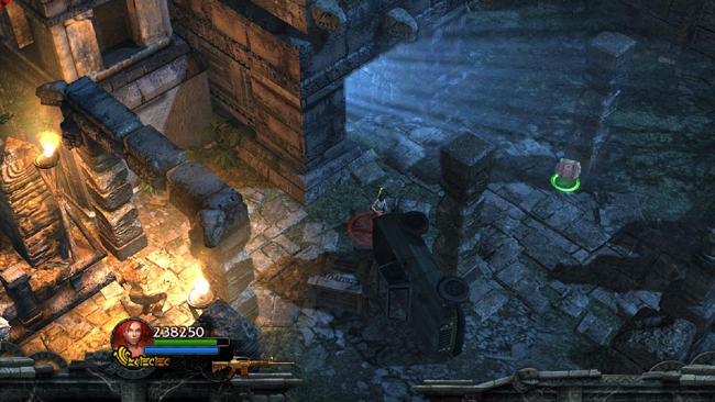 SECOND CHALLENGE TOMB: Snag some gems beneath the walkway and then head to the west. Several shamans and other enemies pour out of the tomb. When you've defeated them, pick up ammo and health on either side of the building.