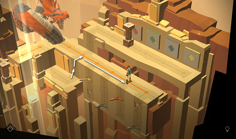 Lara can then move to the right, then forward toward the lizard in order to kill it.