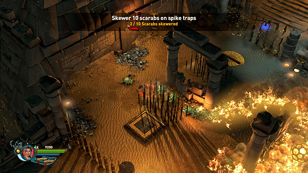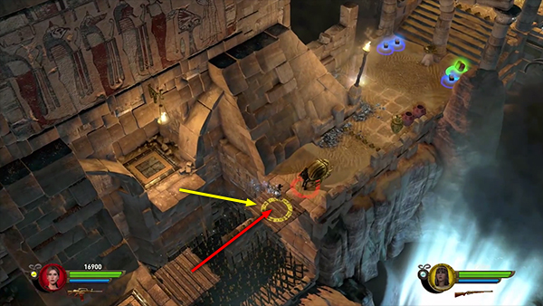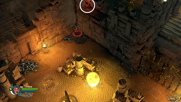 NOTE: In the walkthrough for the first level I attempted to note the location of every gem, breakable urn, etc. In later levels, I don't mention them all. So unless you're attempting a time challenge, stay alert. Try to kill every enemy, light every brazier, and break or blow up every destructible object, including vases, cracked floor tiles, sarcophagi, etc., for maximum score.