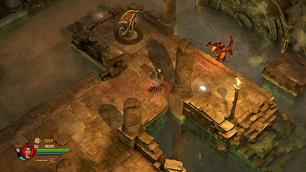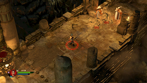 NOTE: In the walkthrough for the first level I attempted to note the location of every gem, breakable urn, etc. In later levels, I don't mention them all. So unless you're attempting a time challenge, stay alert. Try to kill every enemy, light every brazier, and break or blow up every destructible object, including vases, cracked floor tiles, sarcophagi, etc., for maximum score.