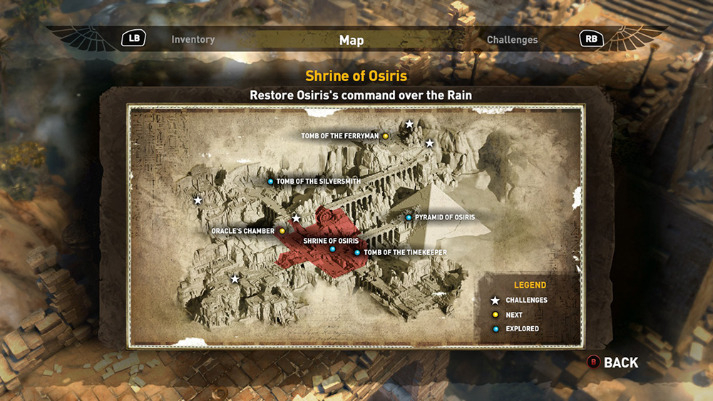 You also receive a new Objective: Return to Osiris's Shrine and Banish the Rain. Go back to the stairs in the lower corner of the tomb and return outside.
