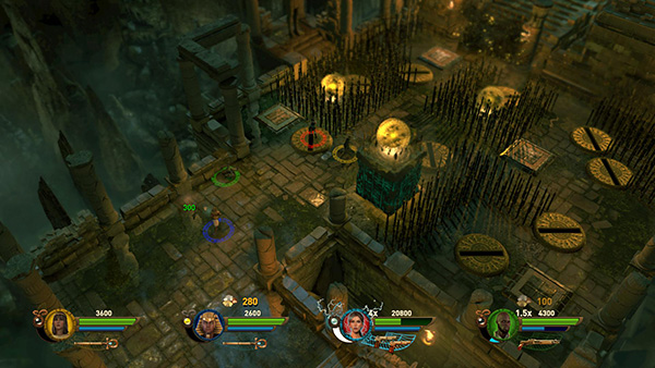 The goal is to depress the correct pads and shine a beam of light from the Staff of Osiris that will pass through, and thus destroy, the 3 Marks of Set.