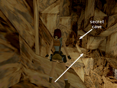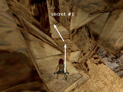 Step to the right a bit and then take a standing jump to land near the cave opening. Inside you'll find secret #1.