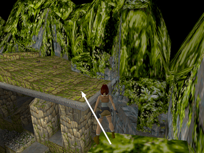 From here, a running jump—or a standing jump from the outer corner—will get Lara on the roof of the building. This is secret #1.