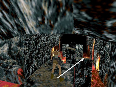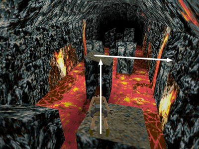 Take another running jump to the next block. Turn right and take a final running jump into the opening in the cave wall.