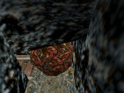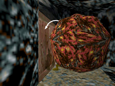 Turn to face the wooden crate. Use the Look button to make sure Lara is flat against the crate and facing it squarely. Then side flip to the left again as many times as it takes to work her into the space between the crate and the boulder.