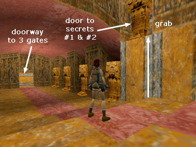 Pull up into the alcove above. The door behind the statue opens automatically. This is secret #1.