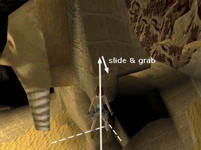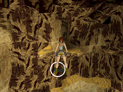 When you've got the positioning right, hop back once (to the spot shown above). Then press Forward then Jump to make Lara take a running jump right at the edge.