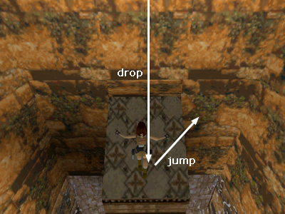 Here Lara is standing inside the secret area after landing the jump.