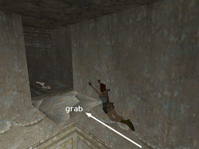 . . . and immediately take a running jump to grab the edge of the tile straight ahead near the alcove. Pull up and run into the alcove before the tile breaks. (Thanks to Mark R. for this alternate strategy.)
