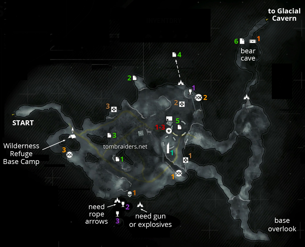 2/14/16 - Added a link to the bear fight video and the note on using gas can to destroy impact barrier, thanks to MakoSDV. This required swapping the numbers of relics 2 and 3 in the text and on the level map.