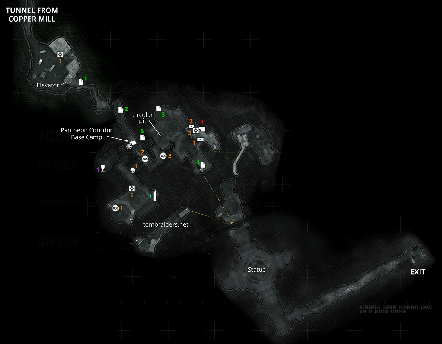 It's possible to get all the collectibles on the first pass, but if you missed any, you can return to the Pantheon Corridor Base Camp via fast travel. The separate ABANDONED MINES COLLECTIBLES GUIDE can also help locate any major items.