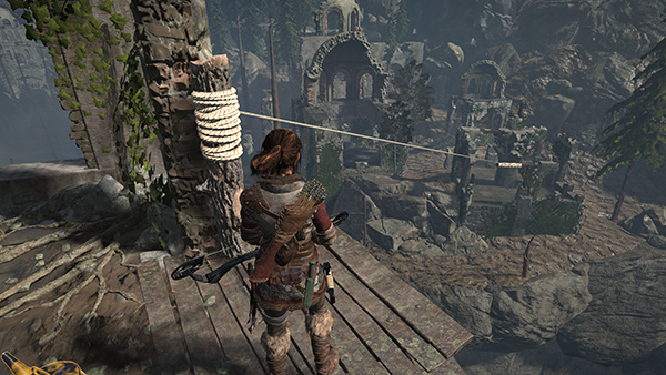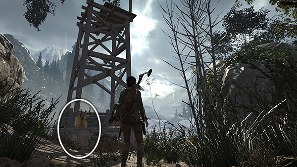 NOTE: After completing the Defensive Strategy mission, the two guard towers will be fitted with ladders so you can climb into them. The tower near the lakeshore is part of the High-Dive Challenge, covered below. The guard tower near the Remnant builder has a rope-wrapped post that will allow you to run a line into the tall, stone tower to the south. You can climb over there now, but if you wait until you have explosives, you can access more of the tower. Again, see the section below on revisiting this area for details.