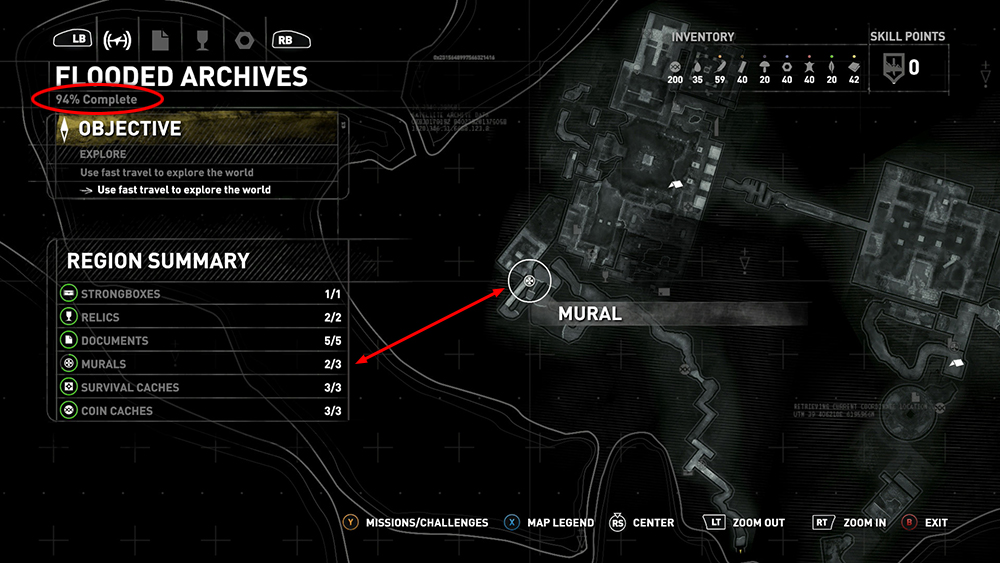 For help using the in-game map to check your progress, refer to the Map/Objectives/Inventory Screens section of the Controls page.