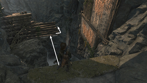 Continue along the passageway. When you come to a drop-off, hop down into the area below to find the last survival cache (3/3). (screenshot)