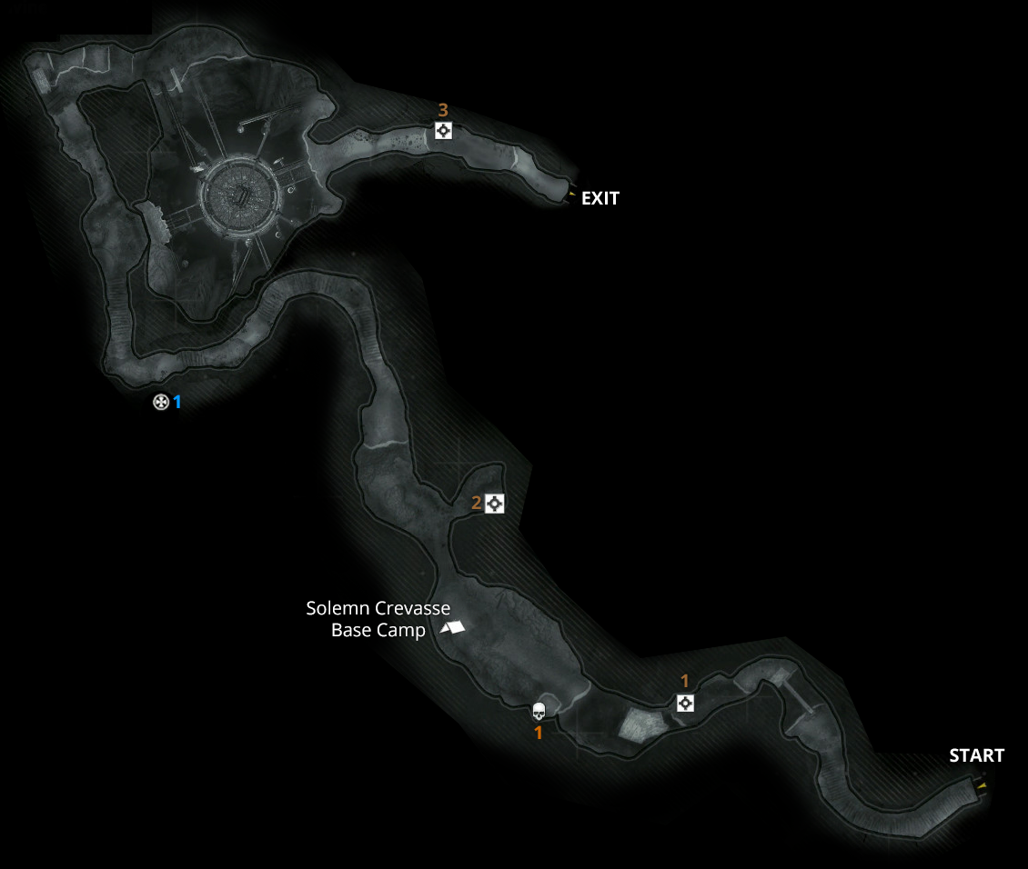 It's possible to get 100% completion on your first pass through this level, but if you missed anything, just fast travel back to the Solemn Crevasse Base Camp. Then use the walkthrough and/or level map to backtrack as needed. The separate Orrery Collectibles Guide includes additional tips.