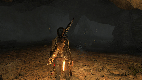 As you approach the archway leading inside, Lara discovers Nadia's grandfather sitting beside the Witch's Cave Base Camp. Nadia gives him some of the antidote and offers to stay with him while Lara goes inside.