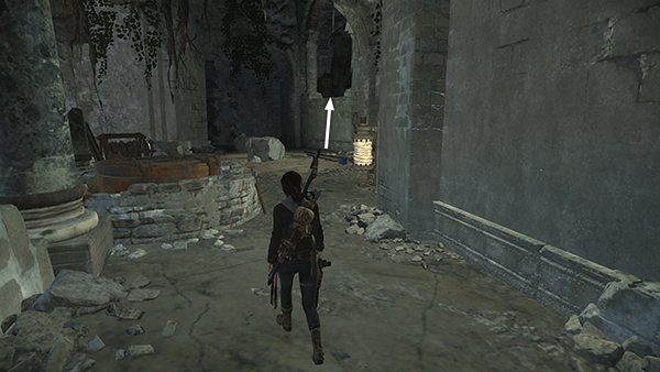 Next, turn left and shoot lantern #6, which is hanging under another stone archway off to the south. (Click screenshot to enlarge.)
