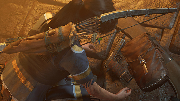 As you move through this room, a brief cutscene shows Lara taking a pistol out of her rucksack. (screenshot) This is meant to alert you that you now have use of all of your weapons again.