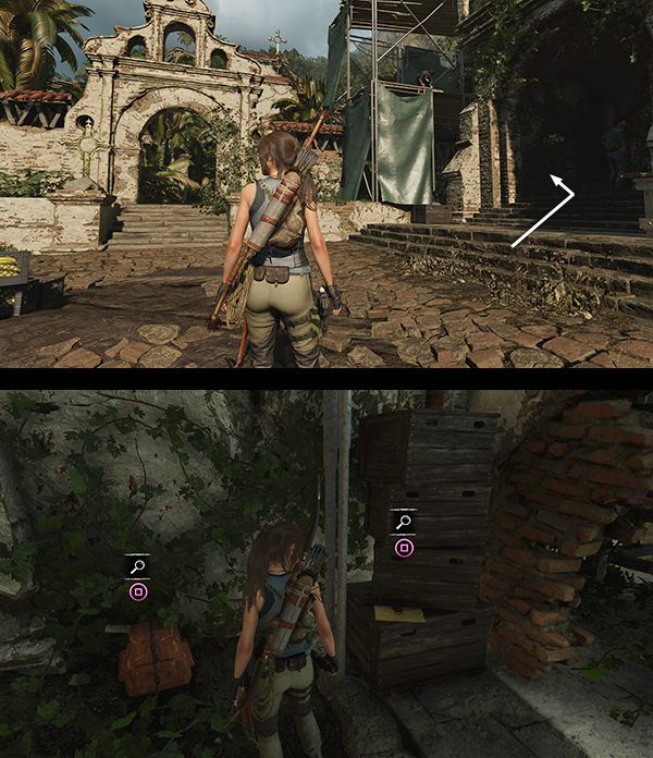 SIDE MISSION – STAR CROSSED (Explore the Local Mysteries): Before following the main story, speak to the mission giver, Guillermo, standing next to Sara. He explains that Isabela, another archaeologist and a special friend, has disappeared. She and Guillermo had a fight the night before and she hasn't been seen since. He suggests that Lara Investigate the Cemetery. Like all Side Missions, this one is optional, but it's required for 100% completion. It's also the only way to gain access to the level's single Crypt. The mission also takes you into one of the two Challenge Tombs and past a number of major collectibles, so this time I've included it in the main walkthrough. Details are below, after the bulleted list, below.