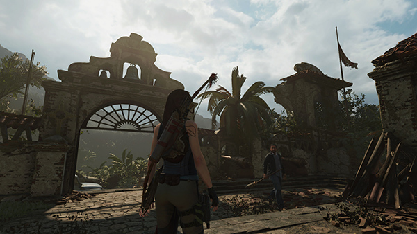 COMBAT OUTSIDE THE CHURCH: With your attention focused on the enemies ahead, you may not notice that a photo of Andres Lopez—well, his dessicated corpse anyway—has been added to the Artifacts collection under Lara's Notebook. If you're not completely clear on the plot so far, you can pause the game and review Lara's notes. This one explains Lopez's relationship with Unuratu's ancestor, as well as how and why he chose to hide the Box.