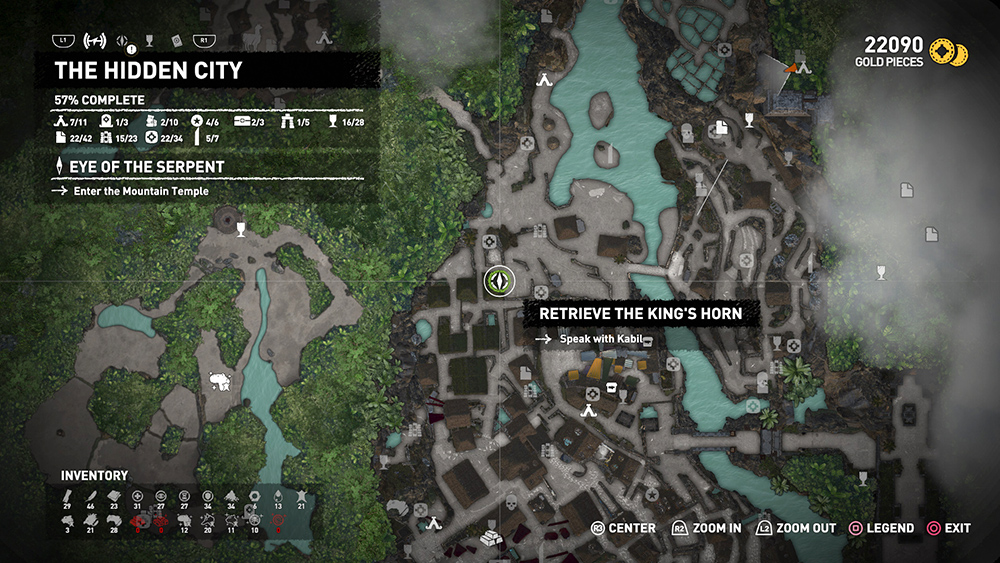 Finally, return to Unuratu's Hideout with the King's Horn. Depending on where you are in the game, Uchu will either be in Unuratu's Home or SKULL CAVE. The location will be marked on your map in green. There are base camps in both places, so you can use Fast Travel or go there on foot. When you return to Uchu, he gives you 350 gold pieces for retrieving the Horn and offers the second part of this mission, which is covered on a separate page.