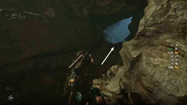 When you enter the CAVE, 3 more enemies spawn deeper inside the cave on the left. First, an Eagle Archer on the far left. You can probably kill him with a headshot. Then a Jaguar Warrior, who rushes in from the upper right and runs down toward you. Shoot him as he approaches. Then another archer pops up behind the ledge where the warrior emerged. Kill him as quickly as you can, since he'll start shooting flaming arrows. (screenshots)