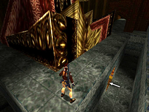 NOTE: Normally holding a flare while jumping and grabbing is not a problem; however, when jumping from the high alcove to grab the statue's hand, Lara may not grab correctly if she's holding a flare. If this happens, reload, drop the flare and try again.