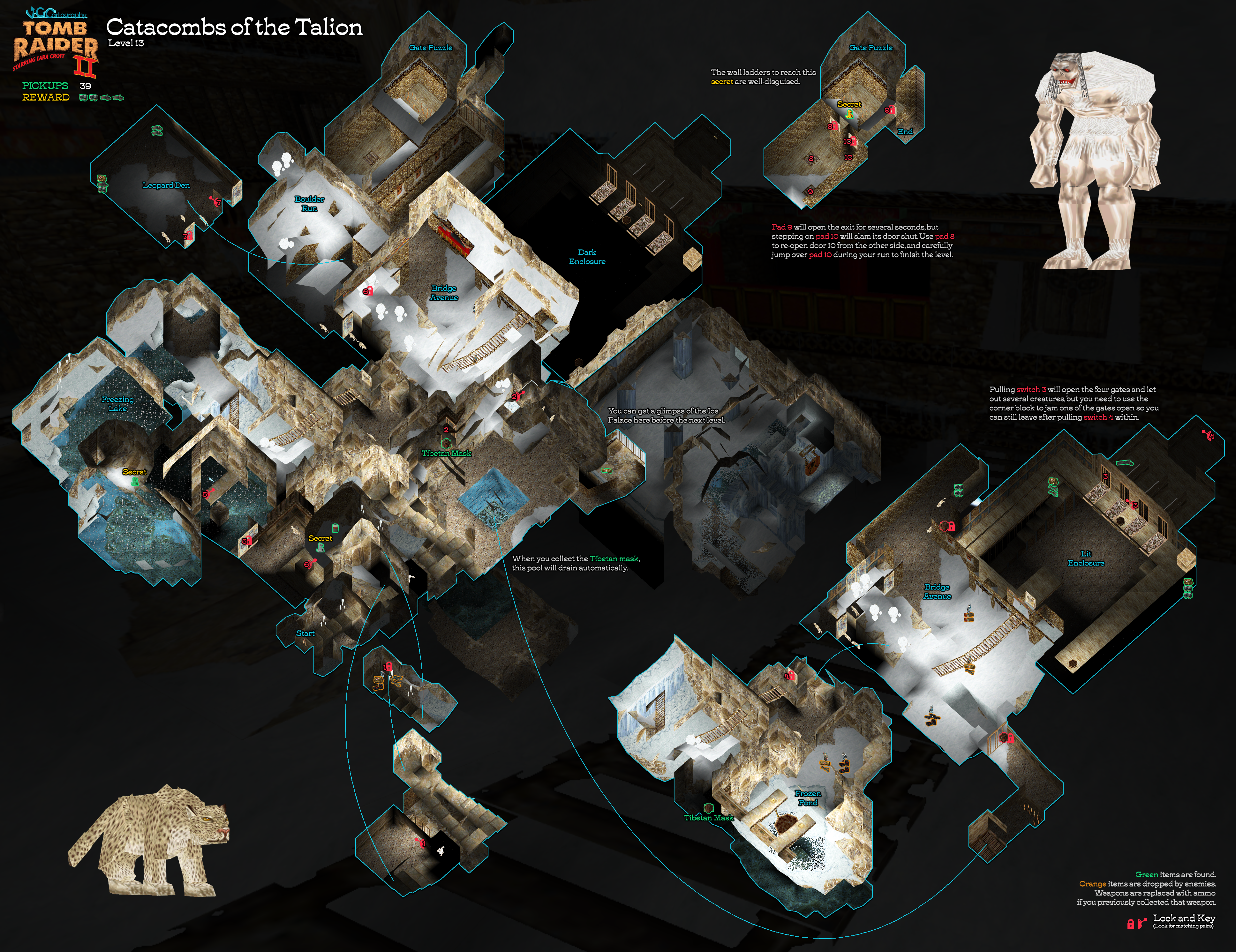 Secrets: 3 Pickups: 39, including 2 Tibetan masks and 3 secrets Kills: 33