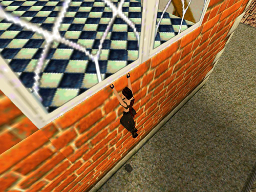 Another fun glitch is a window bug, which enables you to get inside the manor quickly, leaving the butler outside so he doesn't bother you as you explore. See the screenshots below, and this short video walkthrough for details. If you haven't mastered the corner bug yet, you can still use this glitch by following the assault course in the usual way and then jumping to grab the windowsill as shown. (Thanks to EldinSuper for sharing this info.)