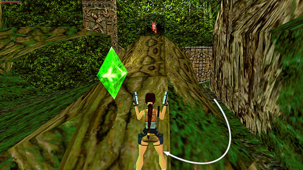 NOTES ON THE PC/MAC DEMO: Demos are are available on the TR3 Downloads page. The first PC demo is nearly identical to the first level (India: Jungle), though there are a few minor differences. The green save/power-up crystals are useless in the demo. Also in the PC demo, MP5 clips and Desert Eagle clips appear as M-16 and automatic pistol clips. In the PC demo, you begin with the shotgun, so there's no need to go after the first secret, and in any case the secrets don't register as such when you find them. Other differences are noted throughout the walkthrough.