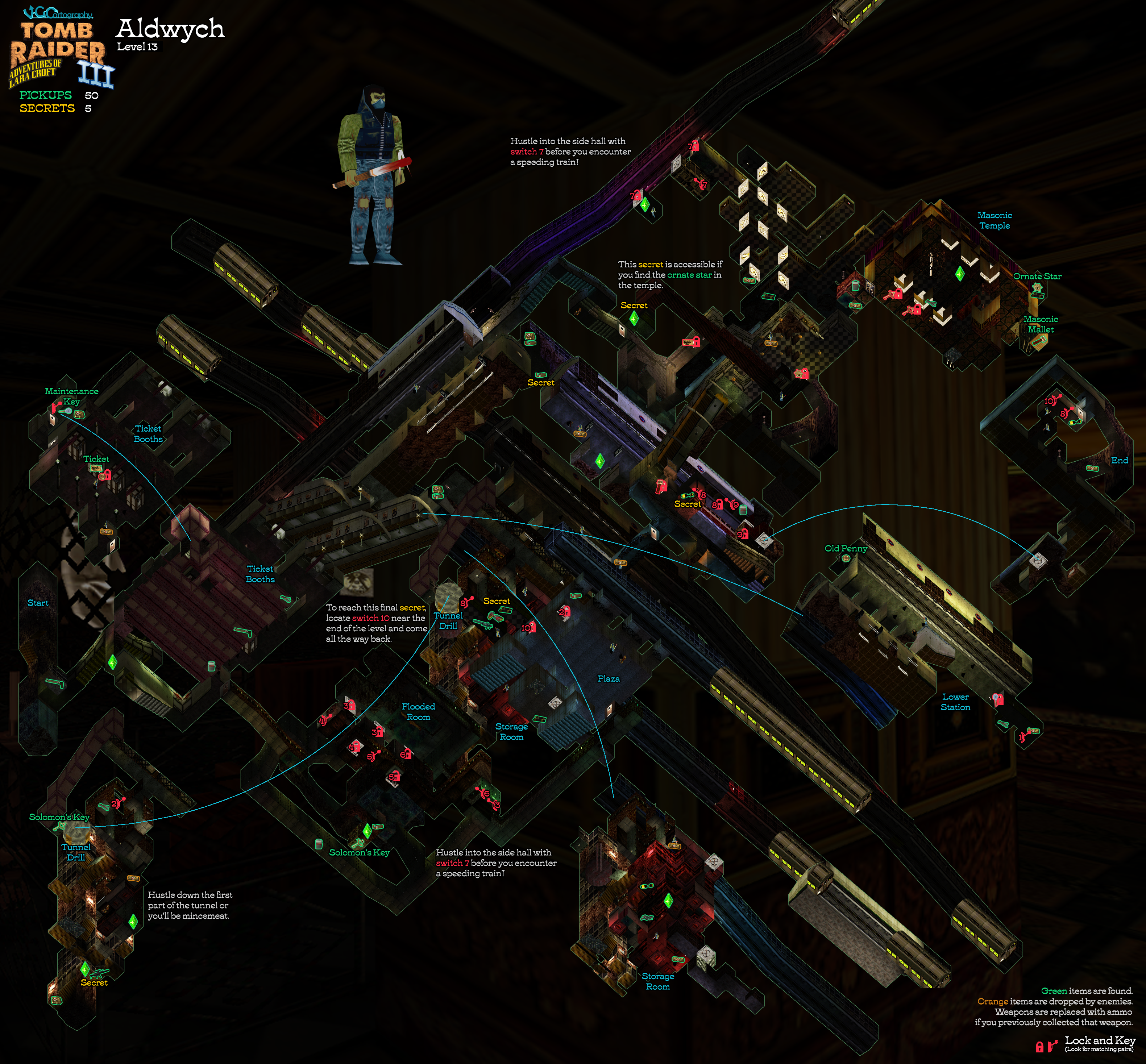 Secrets: 5 Pickups: 50, including 3 keys, Old Penny, Ticket, Masonic Mallet, Ornate Star, and UZIS Kills: 29 Save/power-up Crystals: 9