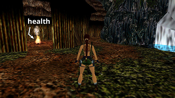 NOTE: If Lara is poisoned by one of the tribesman's darts and you're playing the PC or Mac game, you can probably make it to the next crystal without having to use a health pack. Just keep an eye on your health bar and make sure it doesn't get too low.
