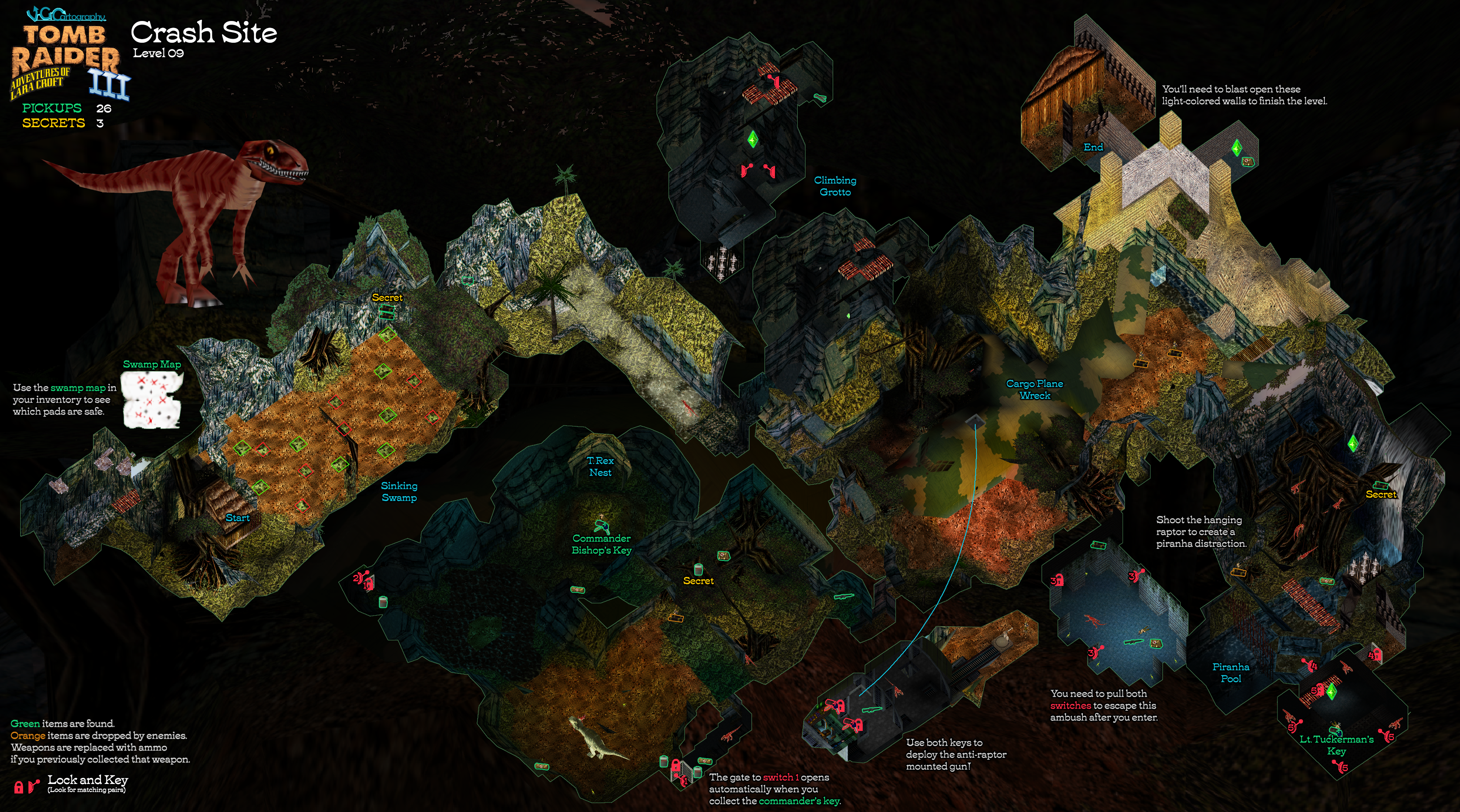 ACKNOWLEDGEMENTS: Special thanks to the participants in the alt.games.tombraider newsgroup, without whom some parts of this walkthrough could not have been written. Thanks to Tom D. and Greg for the alternative raptor horde strategy, and to Adam M., Arvo 29, Cujo, Don, Fred, Helena, Josh, Mark S., Paolo, SH, and Ulf for other assistance on this level.