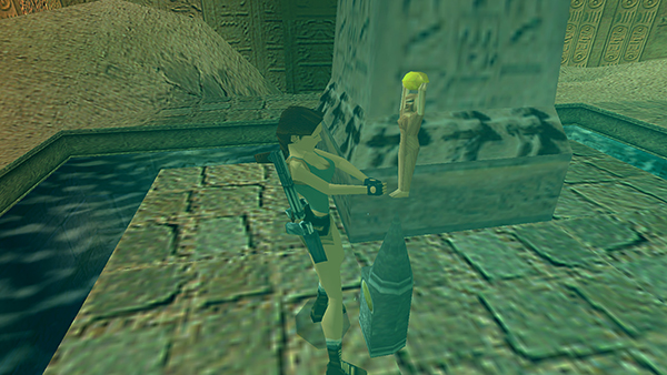 NOTE ON MISSING ARTIFACTS: You need both the SUN GODDESS and SUN DISK in order to complete the SACRED LAKE (second visit). You can either go back to get whichever item(s) you're missing, use the level-skip cheat to advance to the beginning of the Tomb of Semerkhet, or download a PC save file, in which Lara has just used the artifacts.