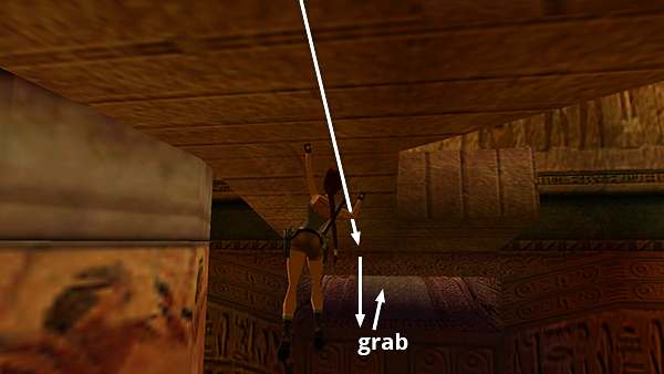 NOTE: If you prefer, you can traverse toward the opening until you hear the bats. Drop down to the floor to shoot them, then climb back up. Lara will lose a bit of health in the fall, though, so this may or may not be worthwhile.