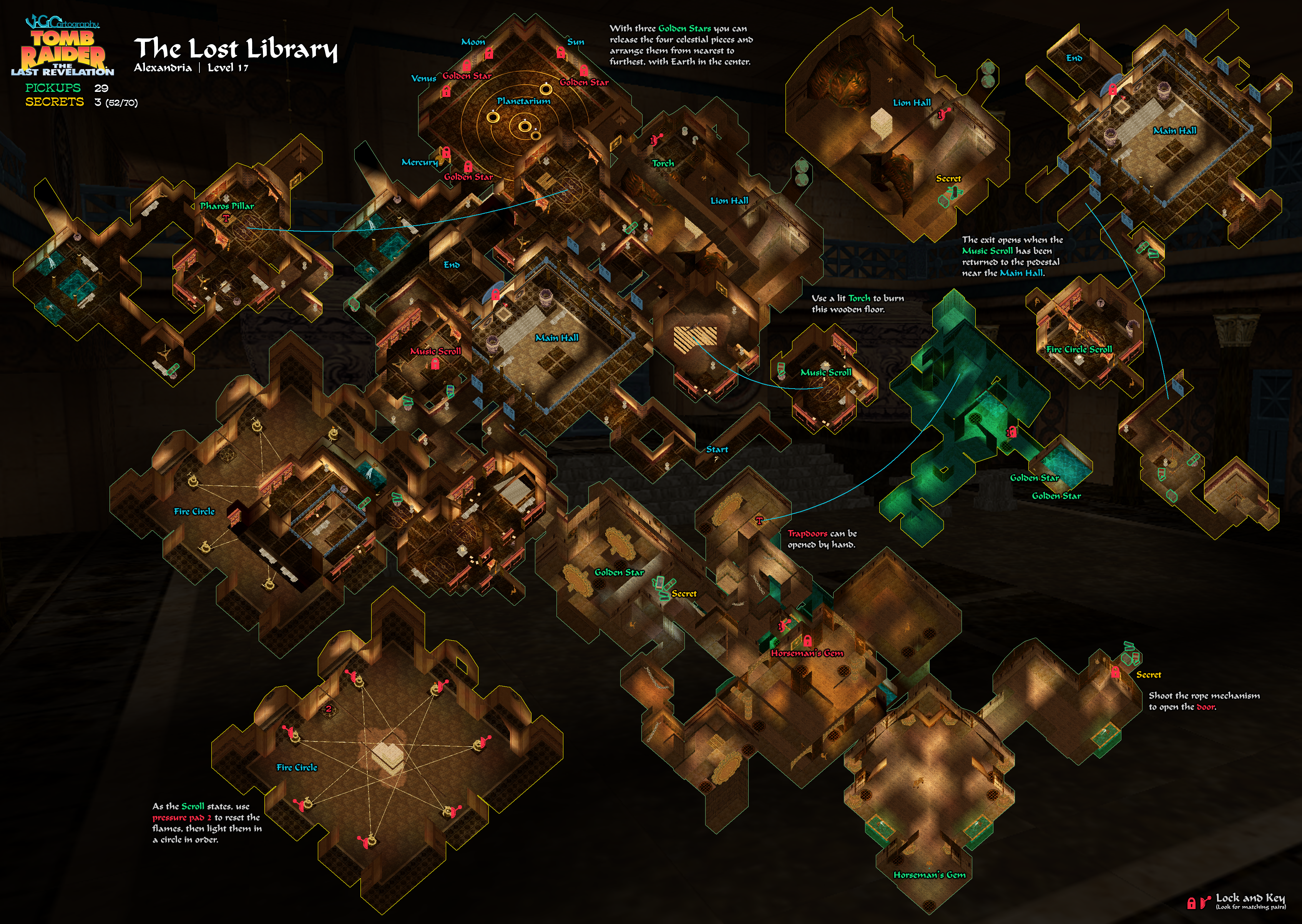 ACKNOWLEDGEMENTS: Special thanks to the participants in the alt.games.tombraider newsgroup and the old tombraiders.com forum, without whom parts of this walkthrough could not have been written. Thanks also to nineball, Annie, Ashya, Atli, CroatiaRaider, James, Jeff Reid, Josh B., L.Y.ris, Marc, Mary V., Niels & Pernille, two different Sams, Sturm, Twisby, and Will for their help on this level, and to the various other players who pointed out the solution to the planetarium puzzle near the pool and the extra fire wraith in PlayStation version.