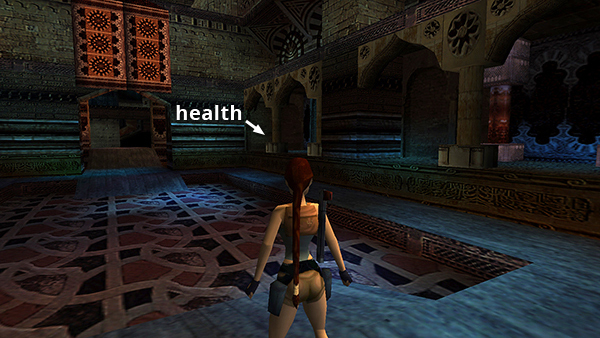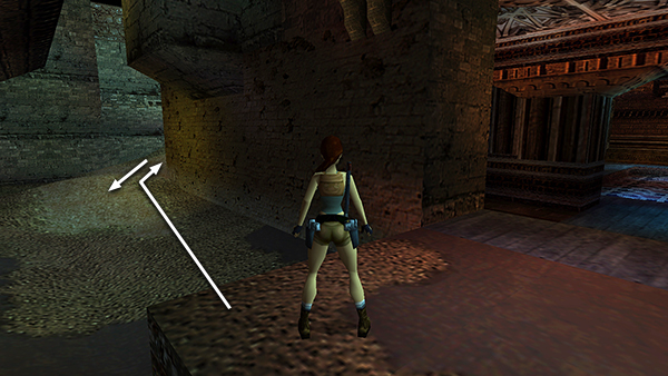 NOTE: Several players have asked about the unreachable alcove in the north wall near the wheel that opens the wooden door. (screenshot) As far as I know, it's impossible to get there except by using the Flight Patch or TR Position Editor. These PC save files include one with Lara in this alcove.