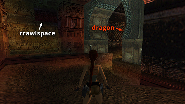 NOTE: If you have even a little health left after coming through the crawlspace, don't bother using a medipack. You'll change levels soon, and Lara's health will be restored.