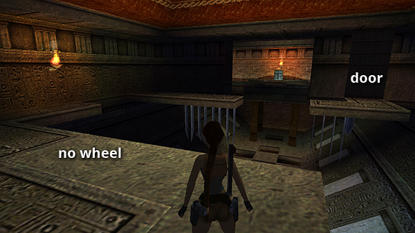 MISSING WHEEL IN GOLDEN VRAEUS ROOM: If you arrive in this room only to find the wheel that opens the door is missing, there is a possible solution.
