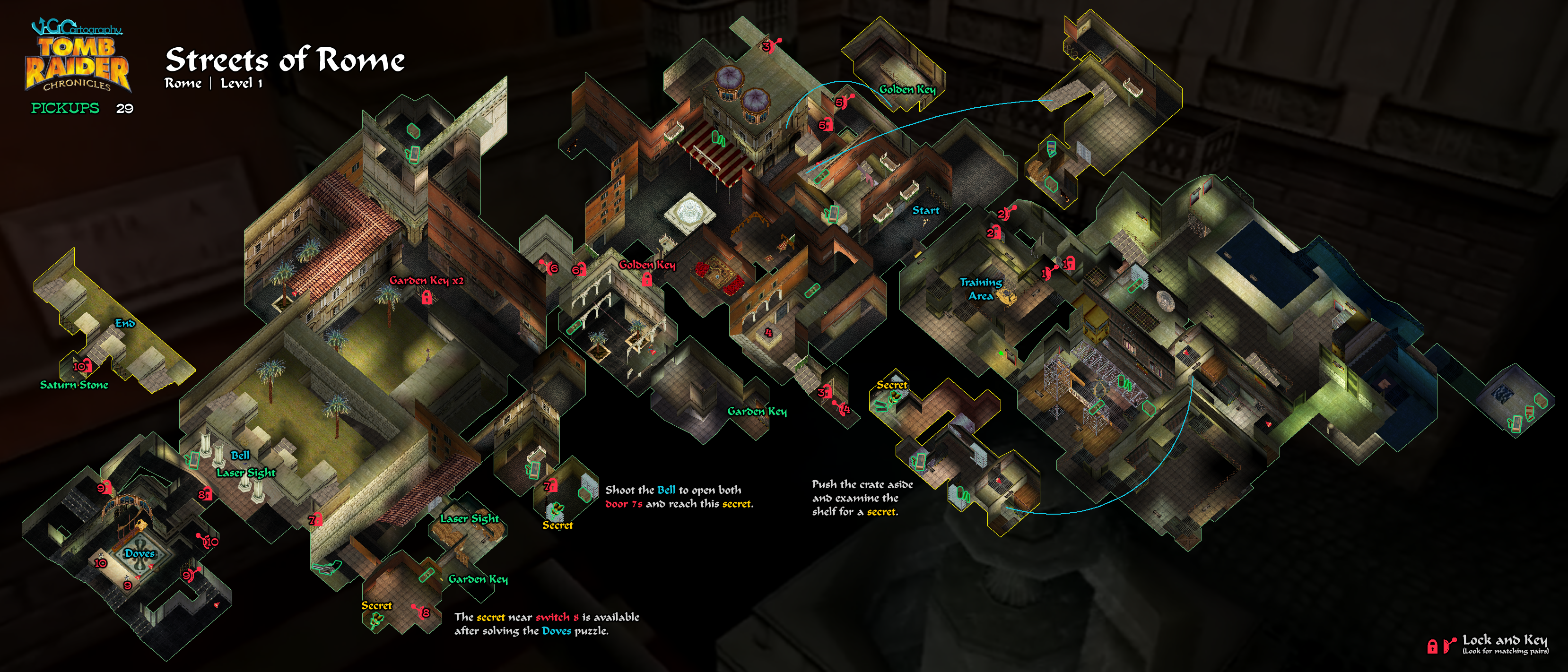 2/21/25 - Added VGCartography's level maps, with permission. Visit VGCartography on DeviantArt and follow on Twitter/X and YouTube for more fantastic game maps. He's also mapped Lara's Home, which isn't a playable level but is used in the introductory flyby.