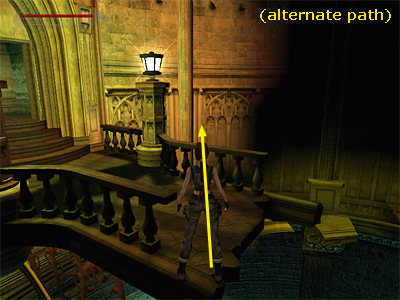 If you're having trouble making the first jump from the end of the bridge to the ledge, try the alternate path shown in the next two screenshots. Otherwise, skip down to the fourth screenshot for the next step.