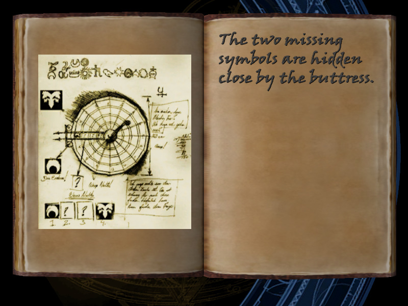 | 19/53 | (53) The two missing symbols are hidden close by the buttress. [includes image] | Margot Carvier's Apartment | screenshot | |