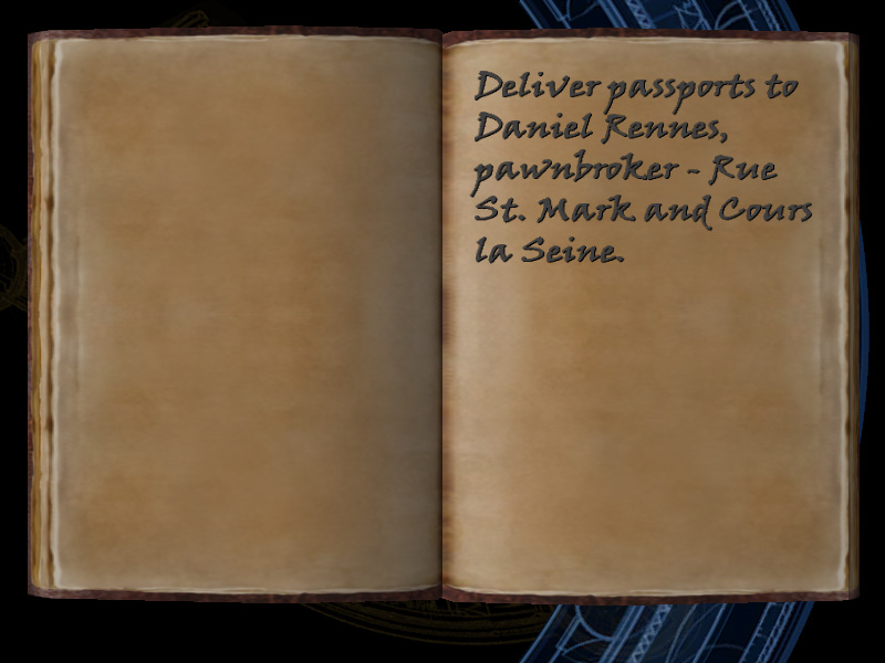 | 28/53 | (9) Deliver passports to Daniel Rennes, pawnbroker - Rue St. Mark and Cours la Seine. | Bouchard's Hideout | screenshot | |