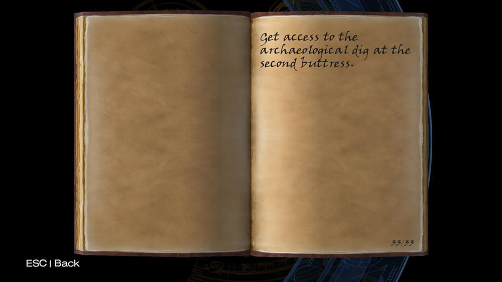 | 33 | Get access to the archaeological dig at the second buttress. (Two opportunities to unlock.) | Louvre Galleries dig sign or Carvier's desk | screenshot | |