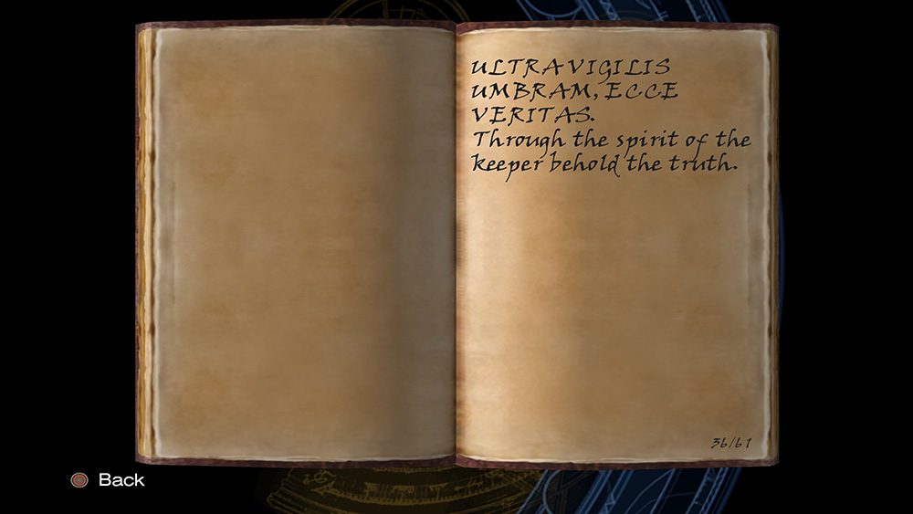 | 36 | ULTRA VIGILIS UMBRAM, ECCE VERITAS. Through the spirit of the keeper behold the truth. | Hall of Seasons | screenshot | |