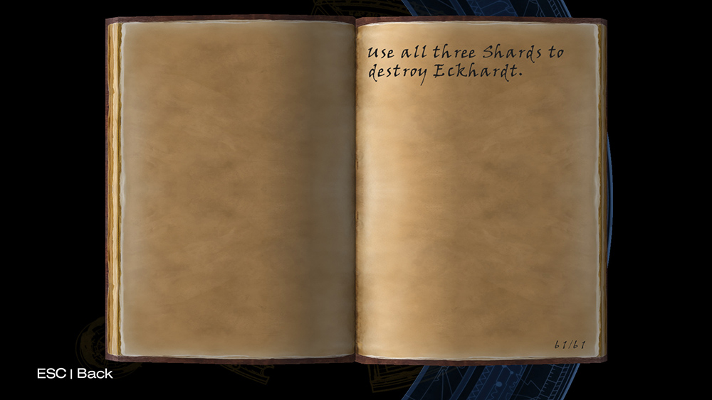 | 61 | Use all three shards to Destroy Ekhardt (Entering final area.) | Eckhardt's Lab | screenshot | |